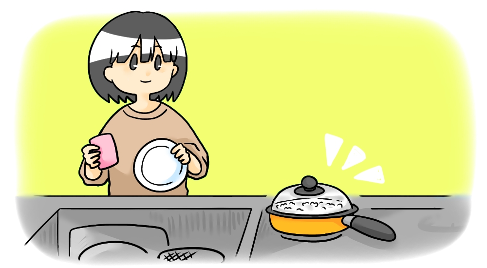私はお皿を洗いながら待ちましたが、おかず作りをしても良さそうですね。