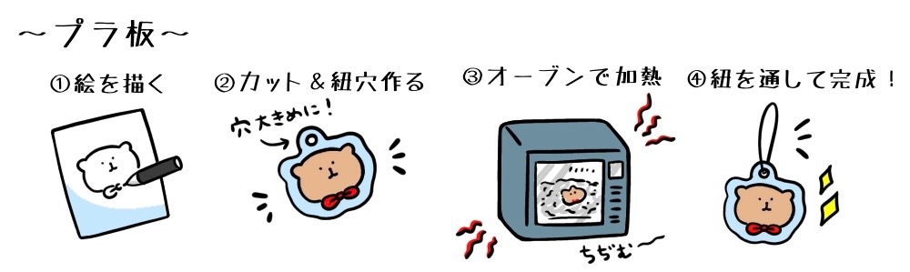 プラ板は、オーブンで加熱すると縮んで固くなる性質を持っています。