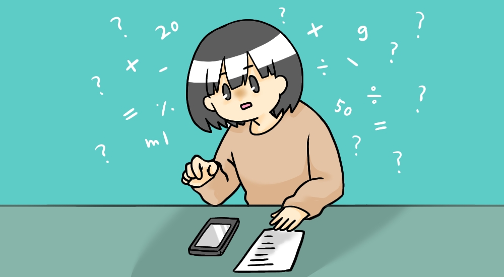 電卓で手打ちもよいですが、グラムあたりの計算をしたり、レシピ探しもできるスマートフォンがオススメ。
