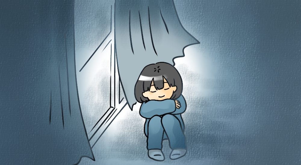 カーテンを開け→網戸にし→電気を消して→リラックスした体勢で座ります。