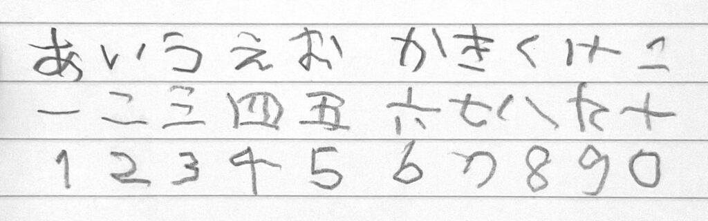 画数の少ない文字だからか形は保たれていますが、これが難しい漢字になると書ける気がしません。